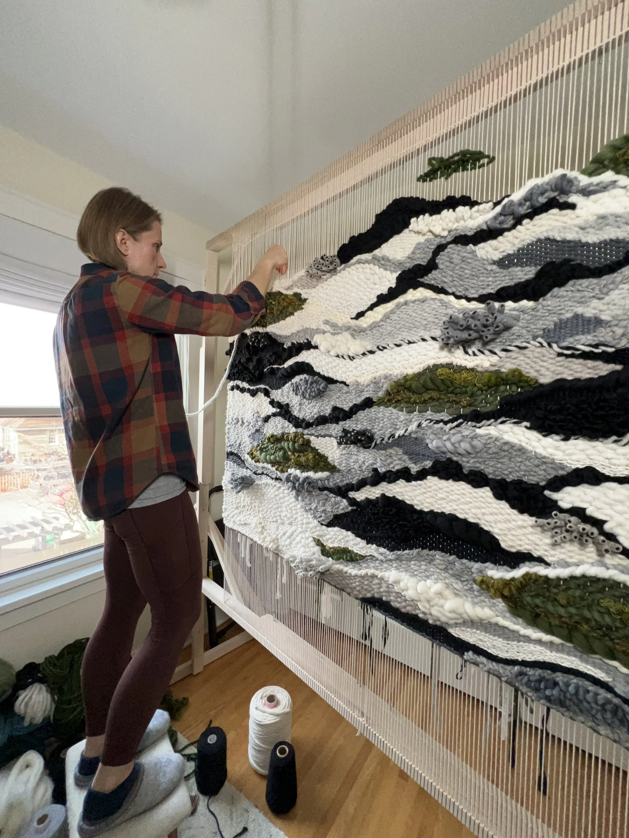 Once we have all the details, I will make a sketch of your unique piece and provide you with a quote. I collect 50% deposit before I start working on your piece. I will then order materials and send photos for your approval. This may take up to two weeks. If you’re happy with the selection, the weaving process begins. I will be sending you photos and updates throughout the process to ensure we’re on the same page.