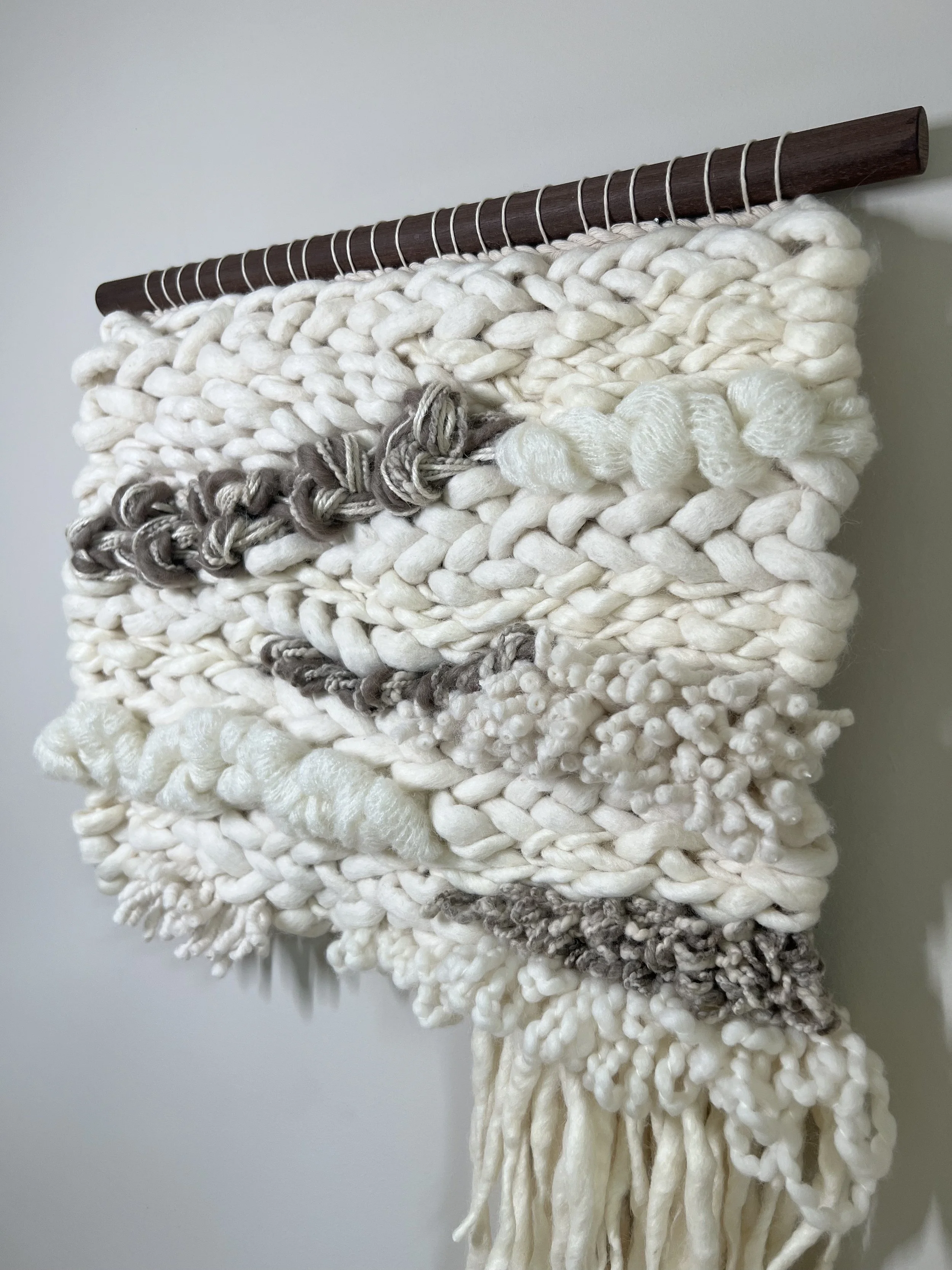 I have been experimenting a bit lately. Felted yarn has been quite a treat. It’s always such a discovery process to see how the fibers will guide me.